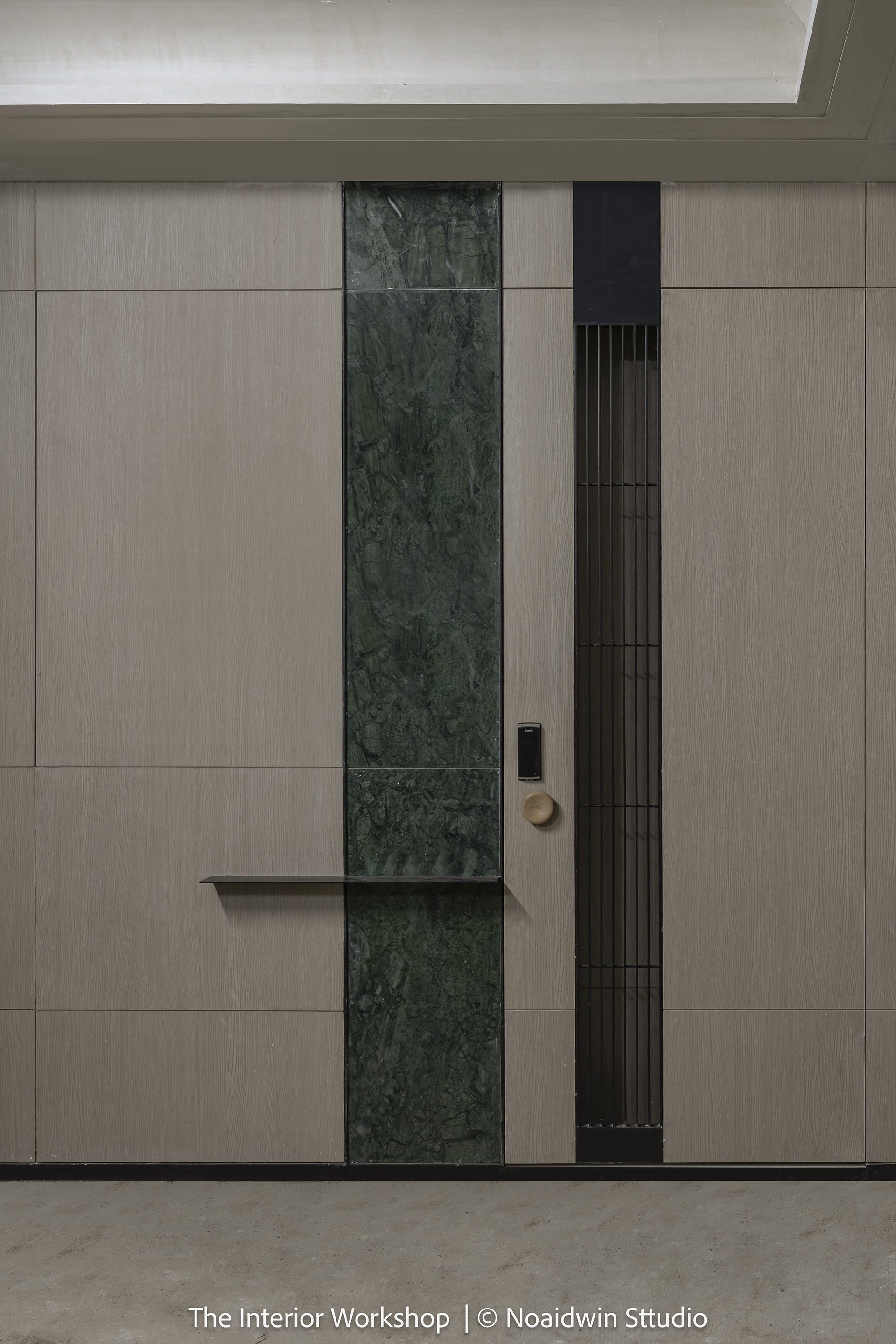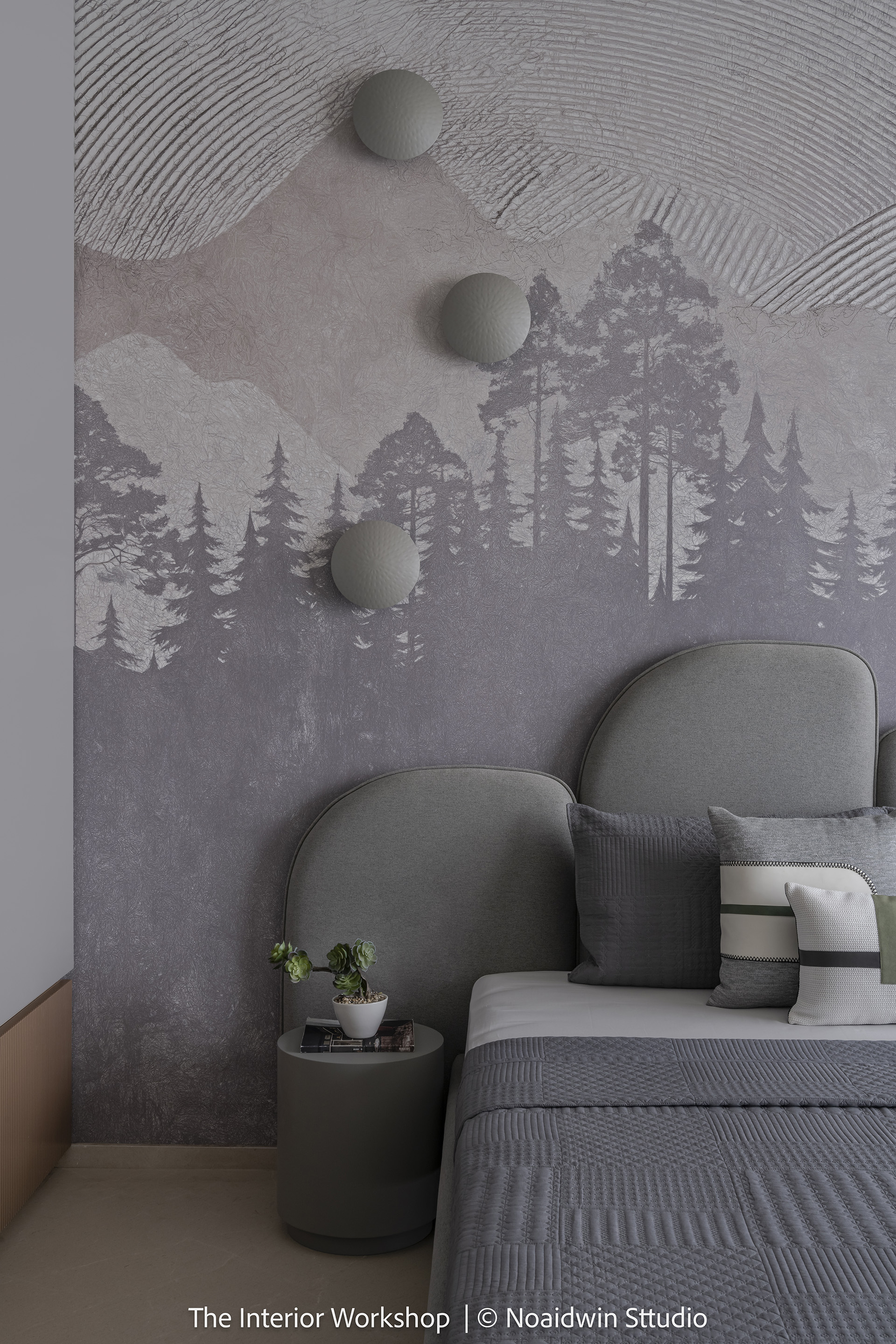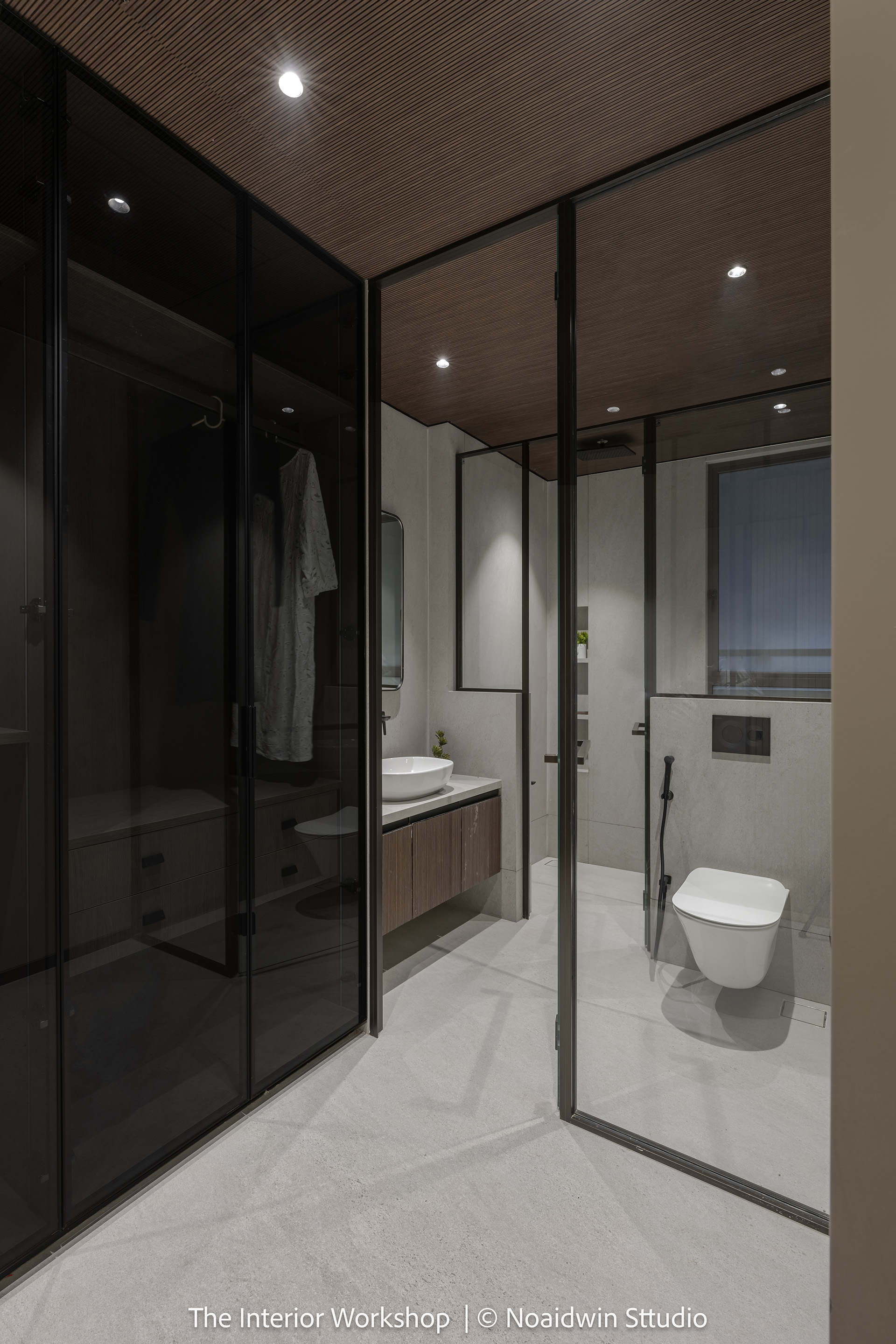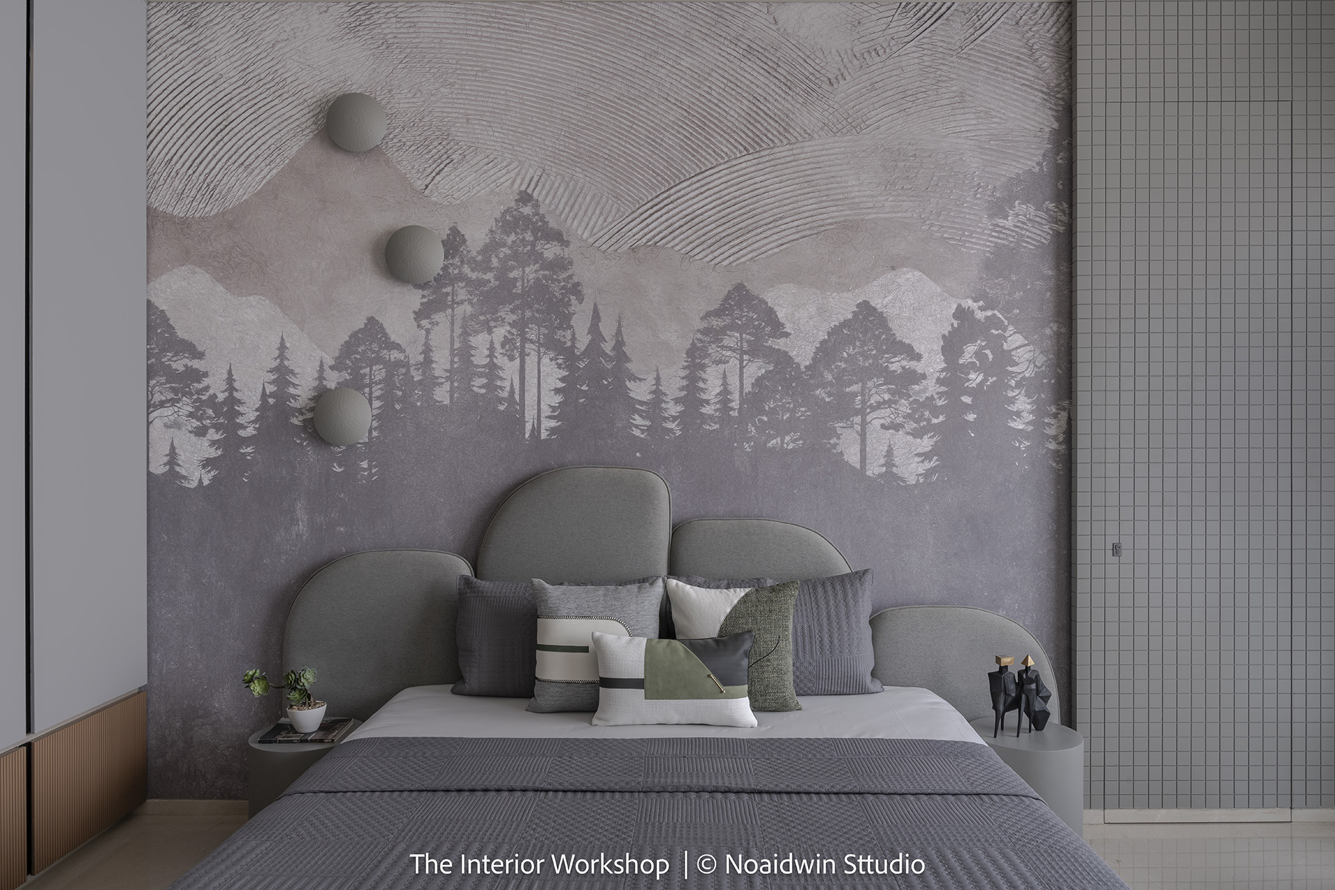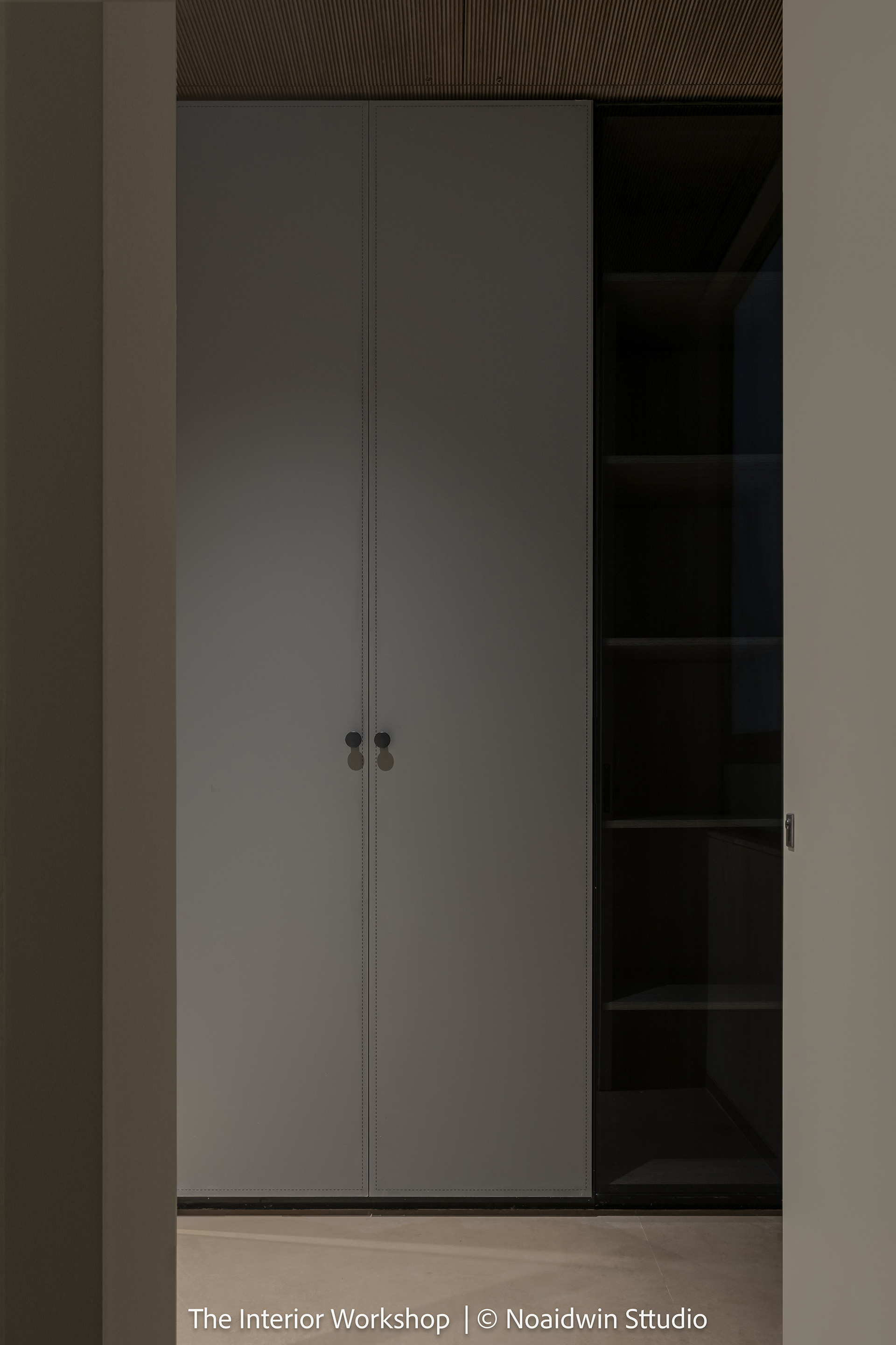 The design also incorporates ample natural light, softened by wooden blinds that offer both privacy and style. The chandelier, with its unique design, adds a sculptural element to the space, elevating the overall aesthetic. This project is a testament to The Interior Workshop mastery in crafting spaces that blend elegance with comfort.
