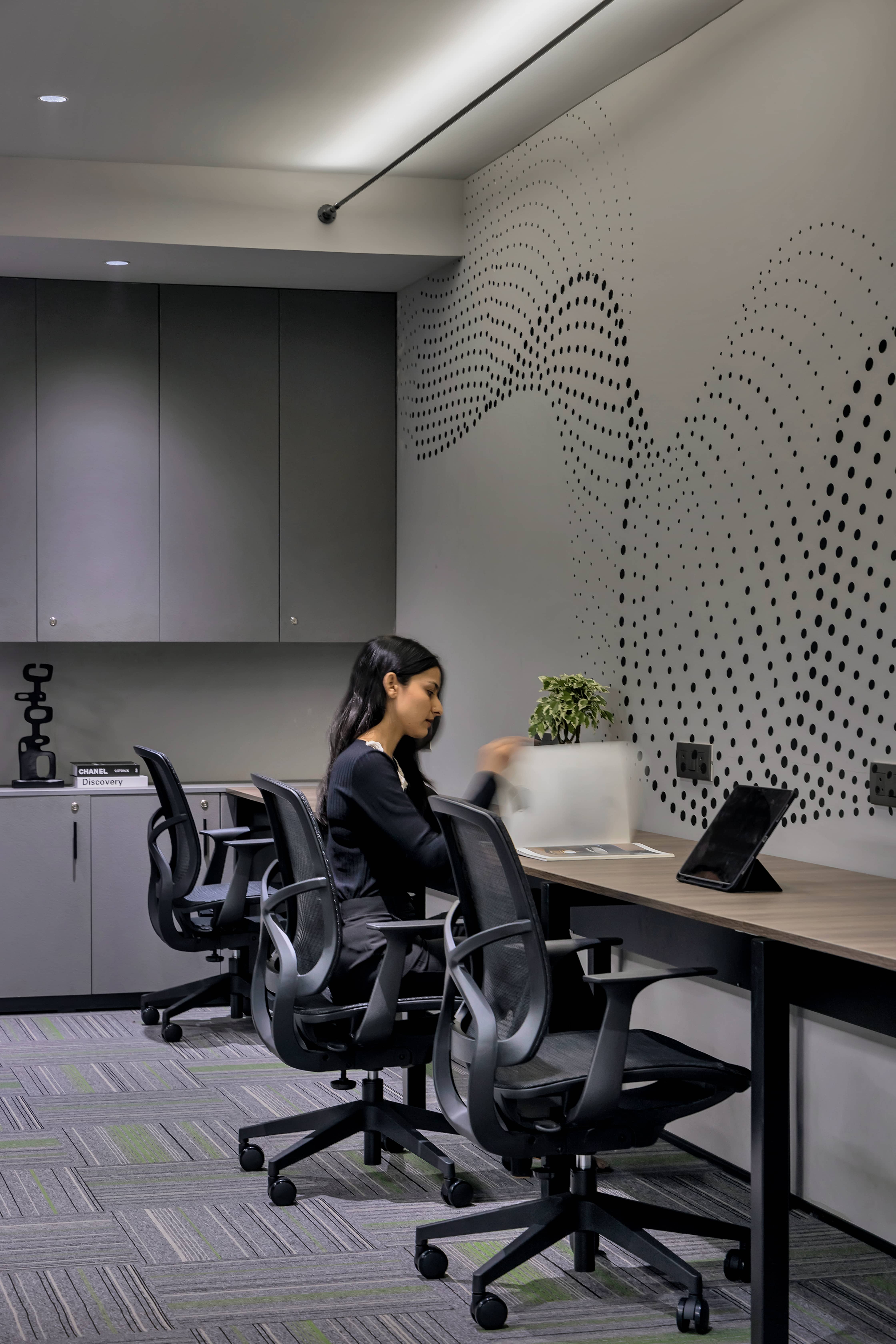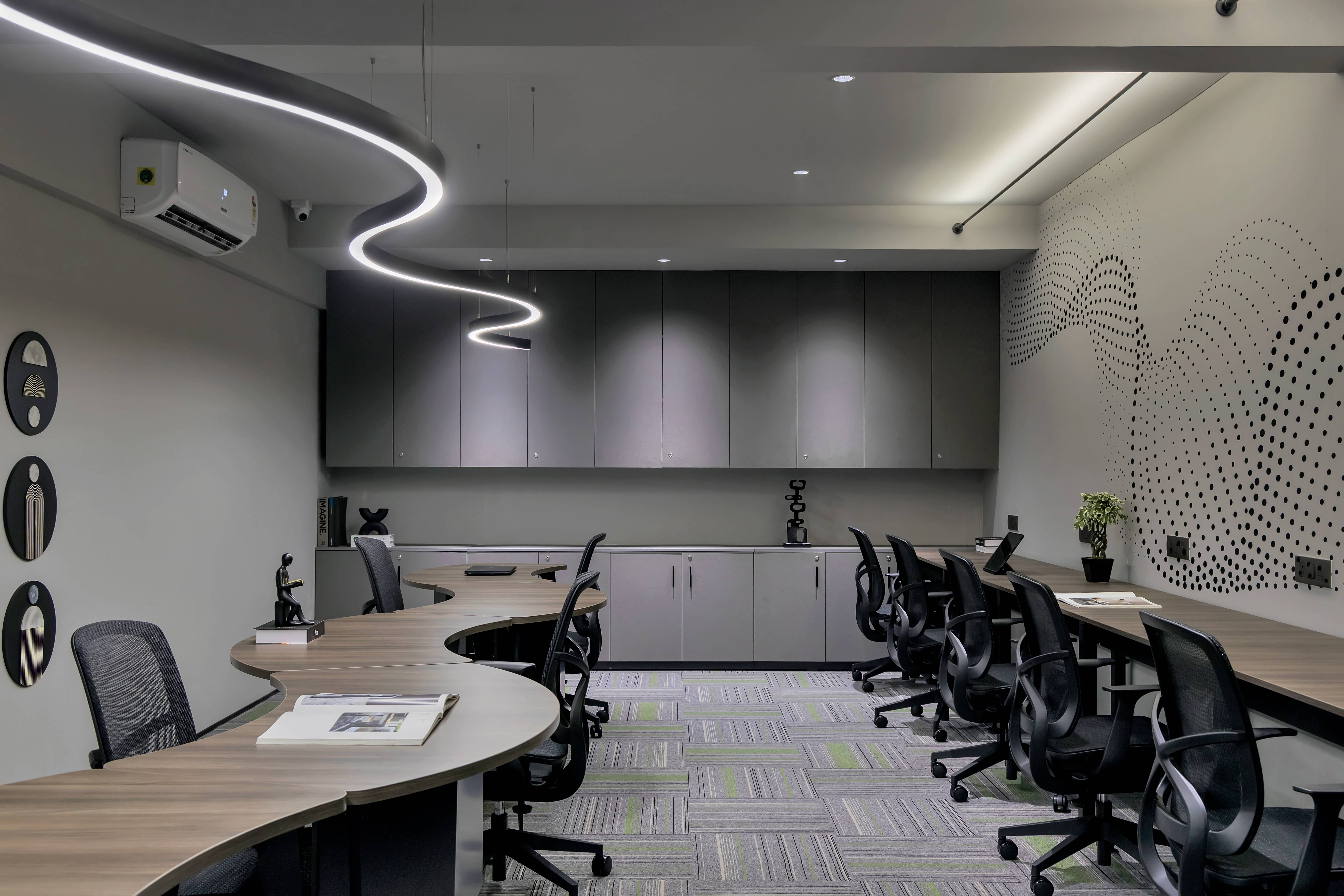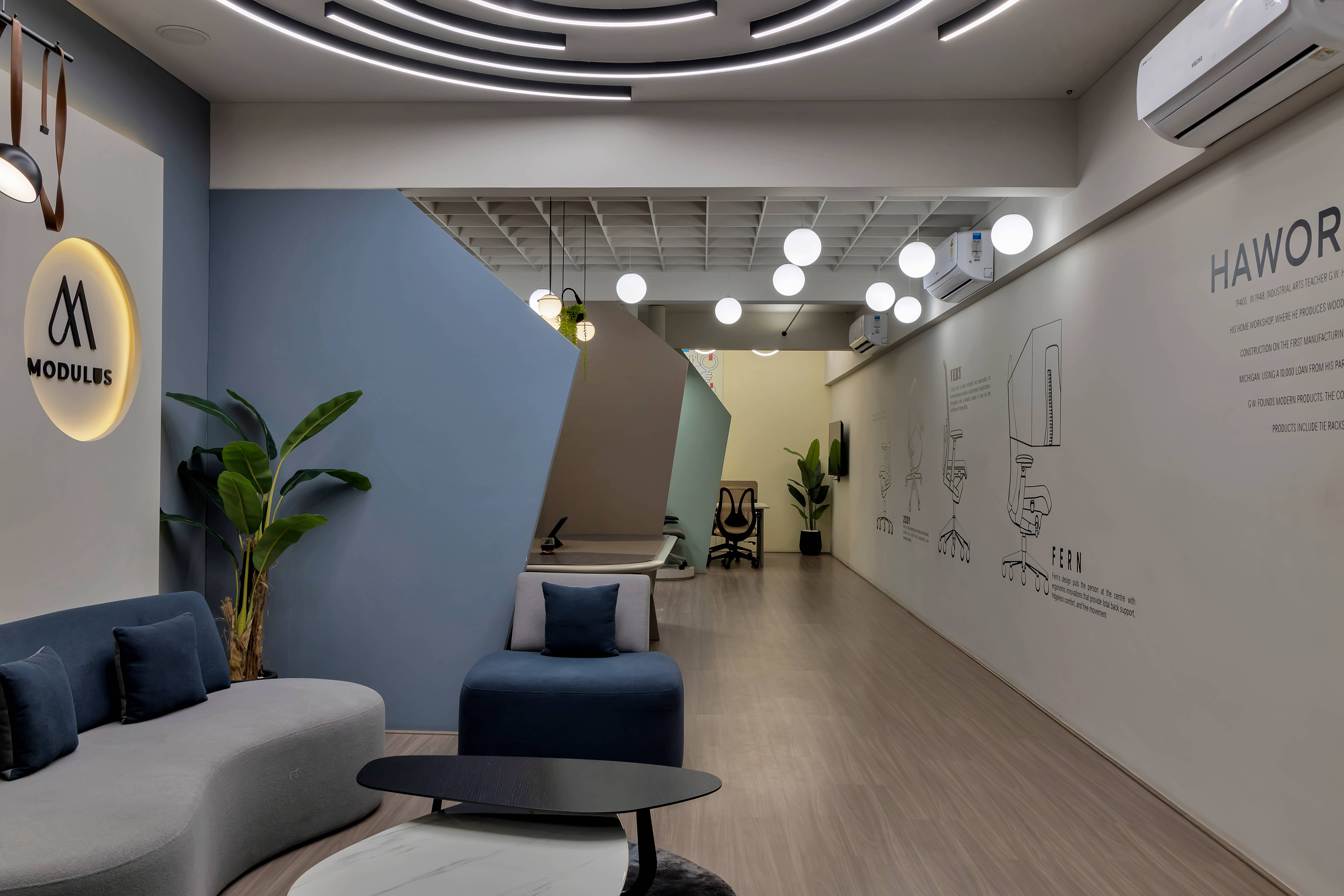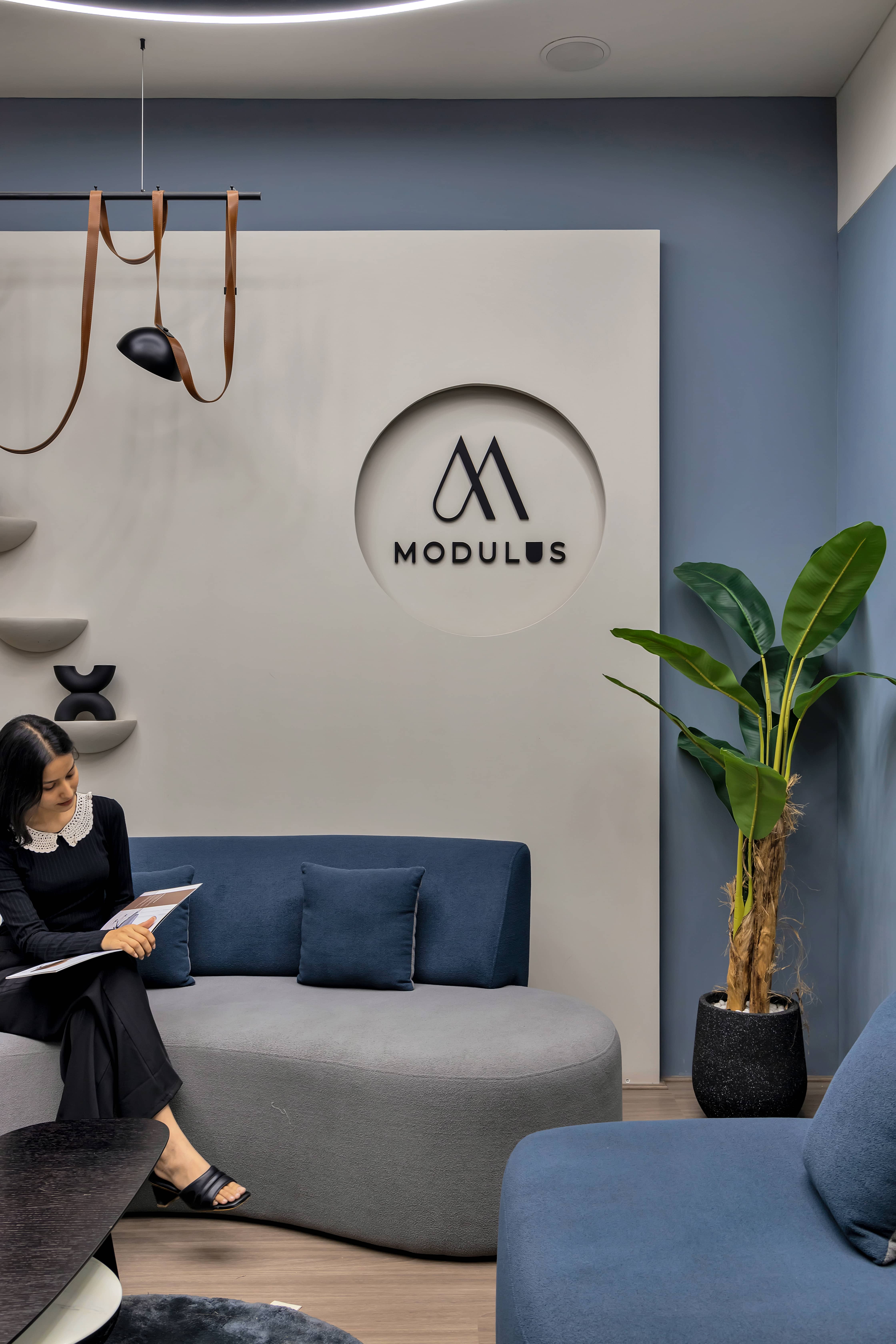 The interiors of Modulus reflect a contemporary design language that prioritizes functionality, comfort, and aesthetic sophistication. Each space is carefully curated to enhance productivity while maintaining visual harmony.