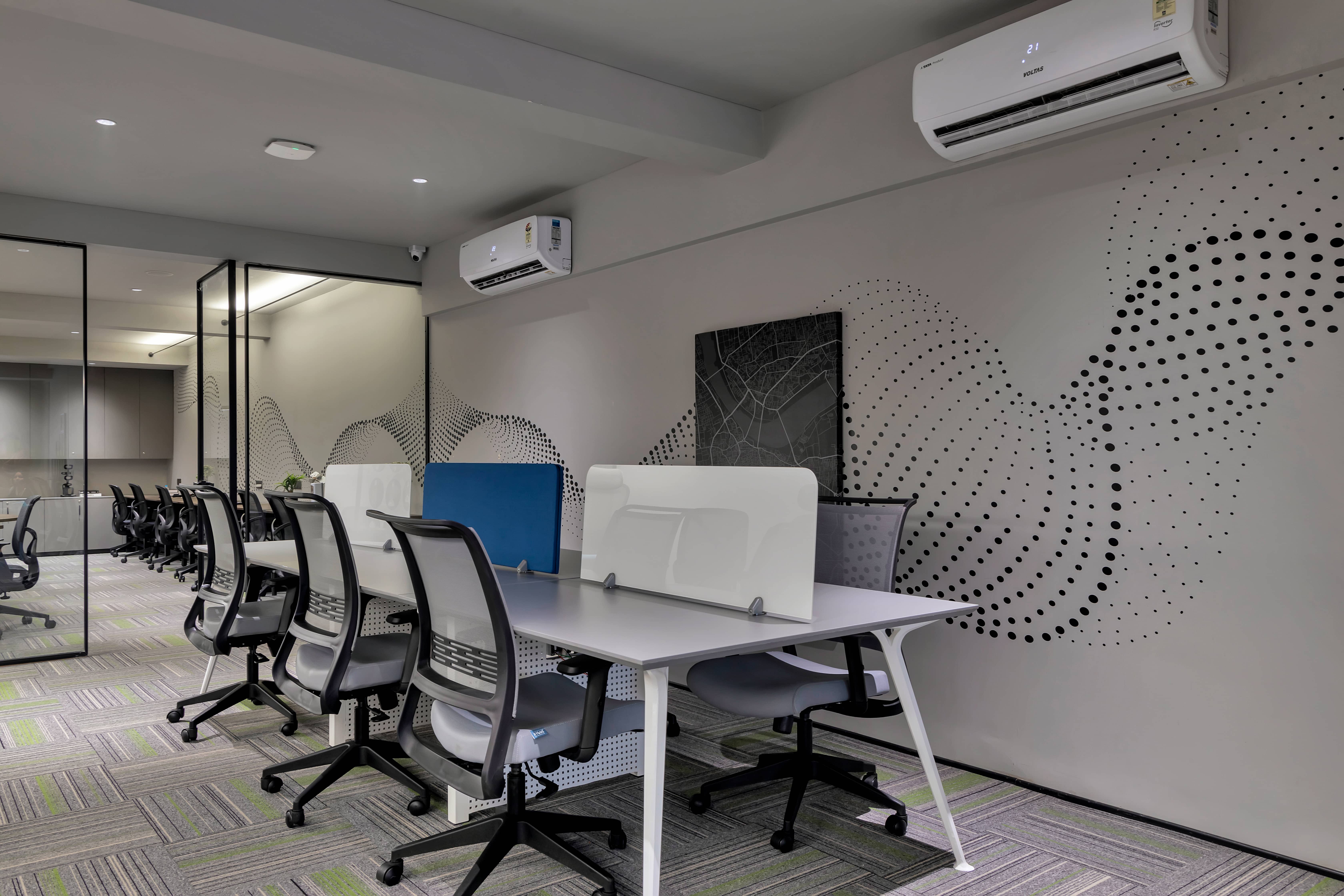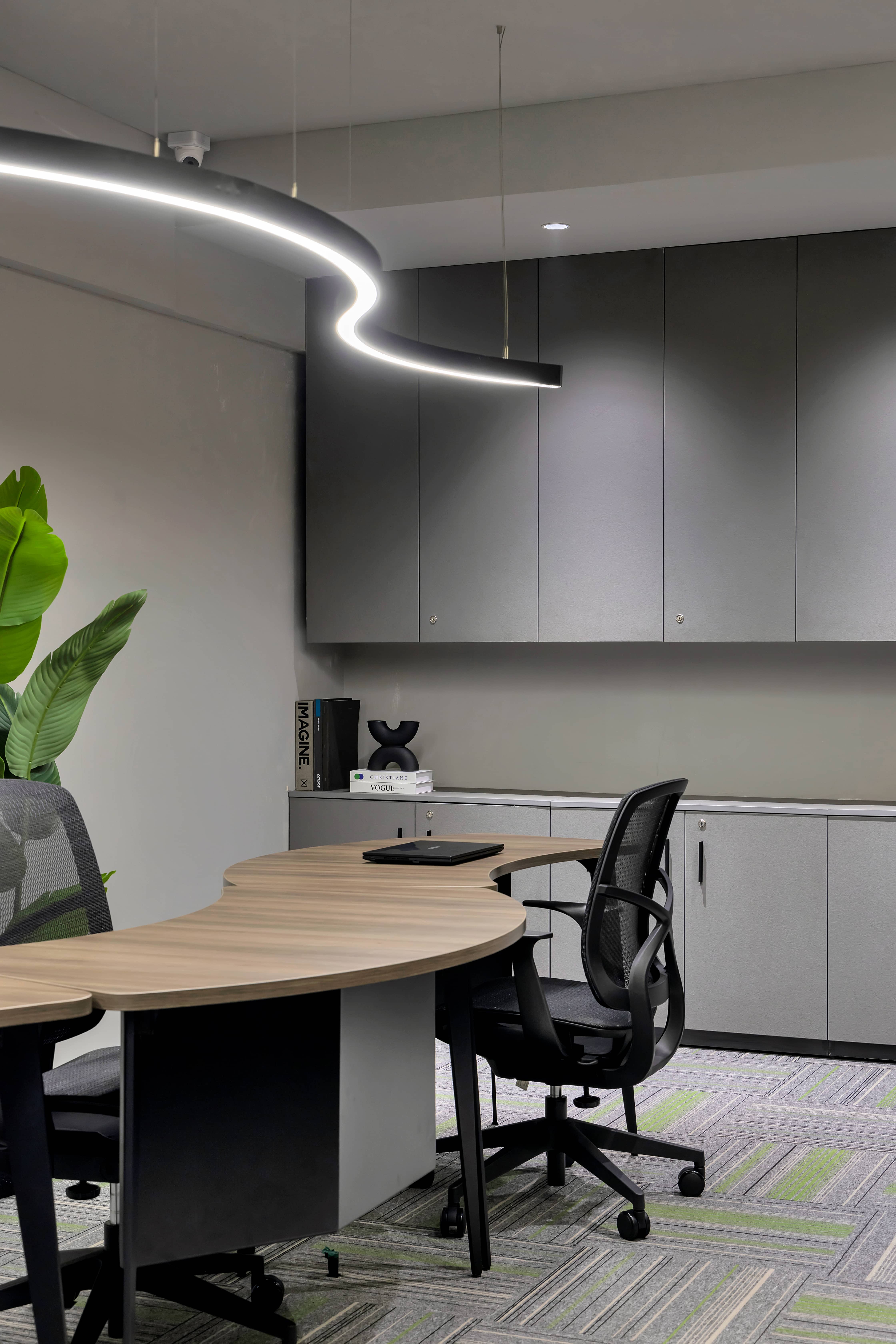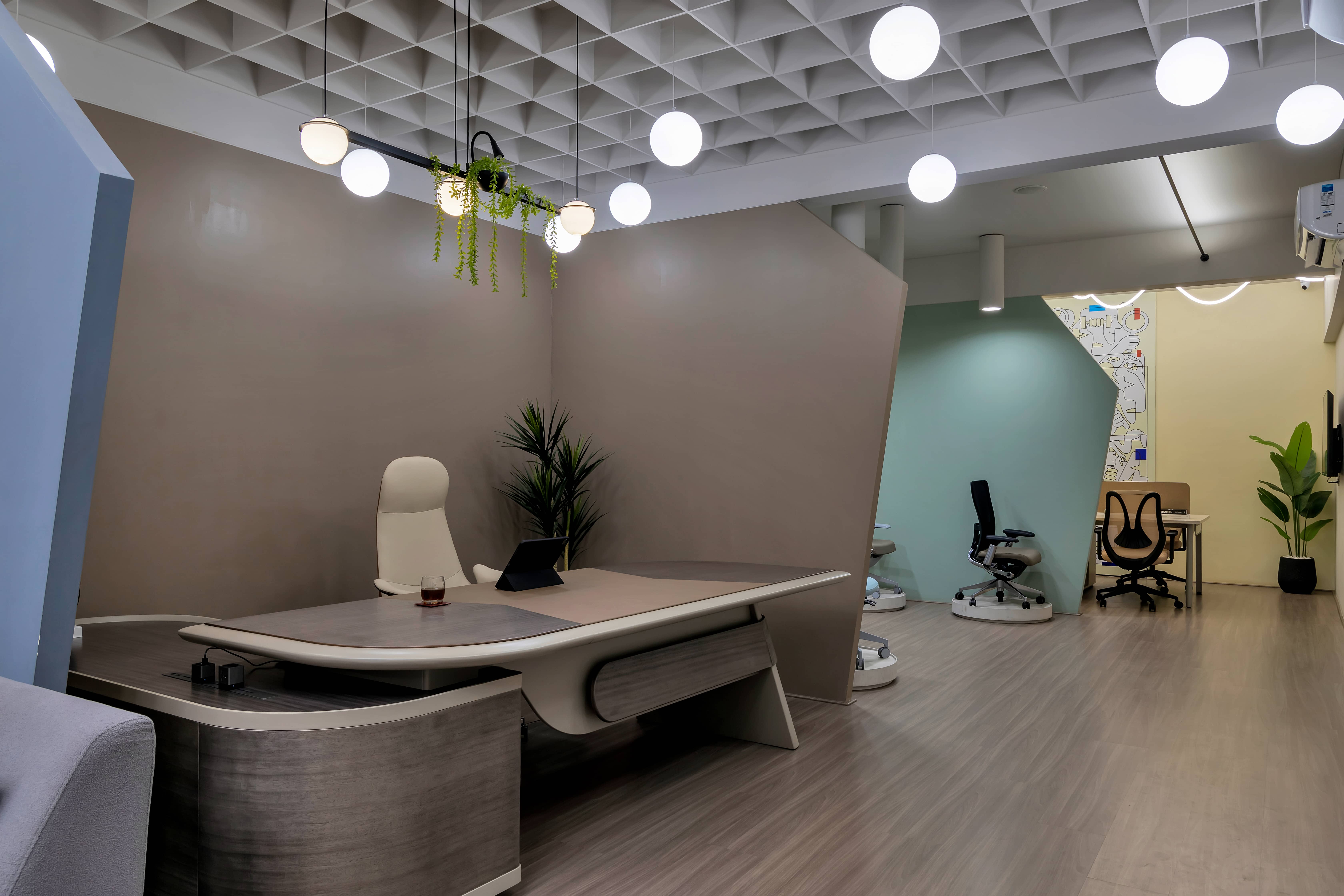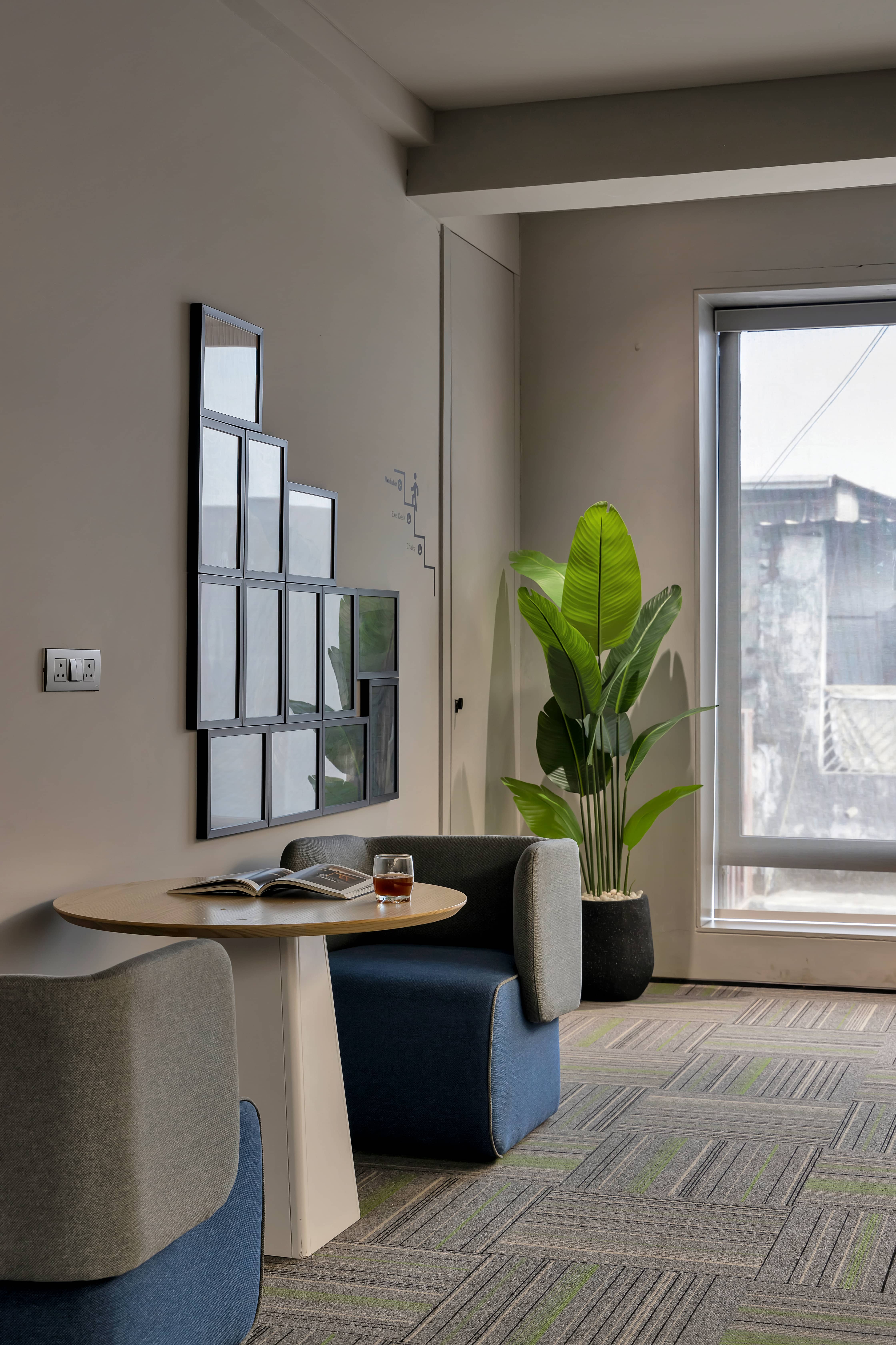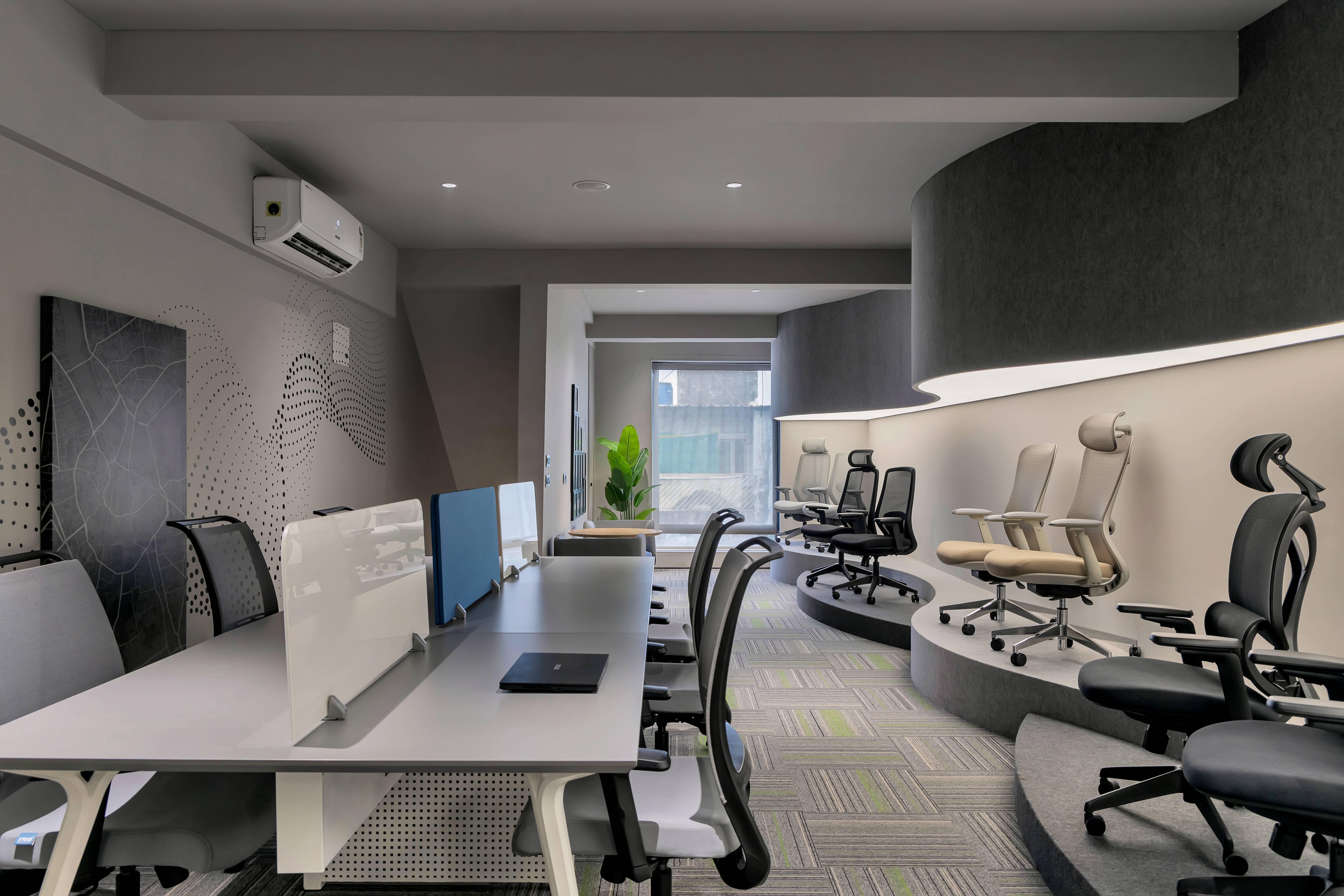 The interiors of Modulus reflect a contemporary design language that prioritizes functionality, comfort, and aesthetic sophistication. Each space is carefully curated to enhance productivity while maintaining visual harmony.