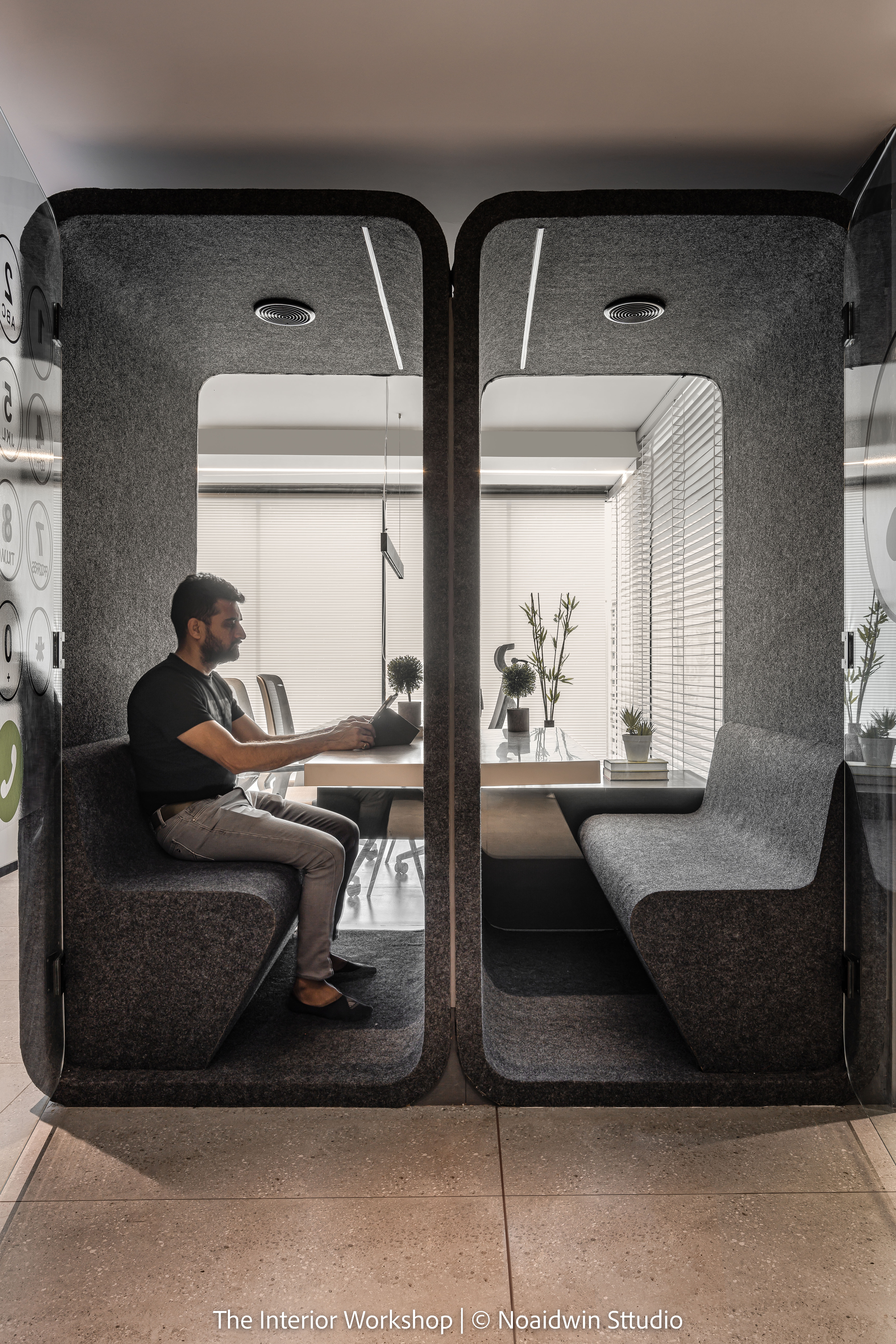 As a tribute to modern communication needs, we introduce the PodBooth This generously spacious phone and work booth has been thoughtfully designed to create a serene atmosphere, perfect for conducting undisturbed phone and video conversations. An automated airflow system ensures a constant supply of fresh air.