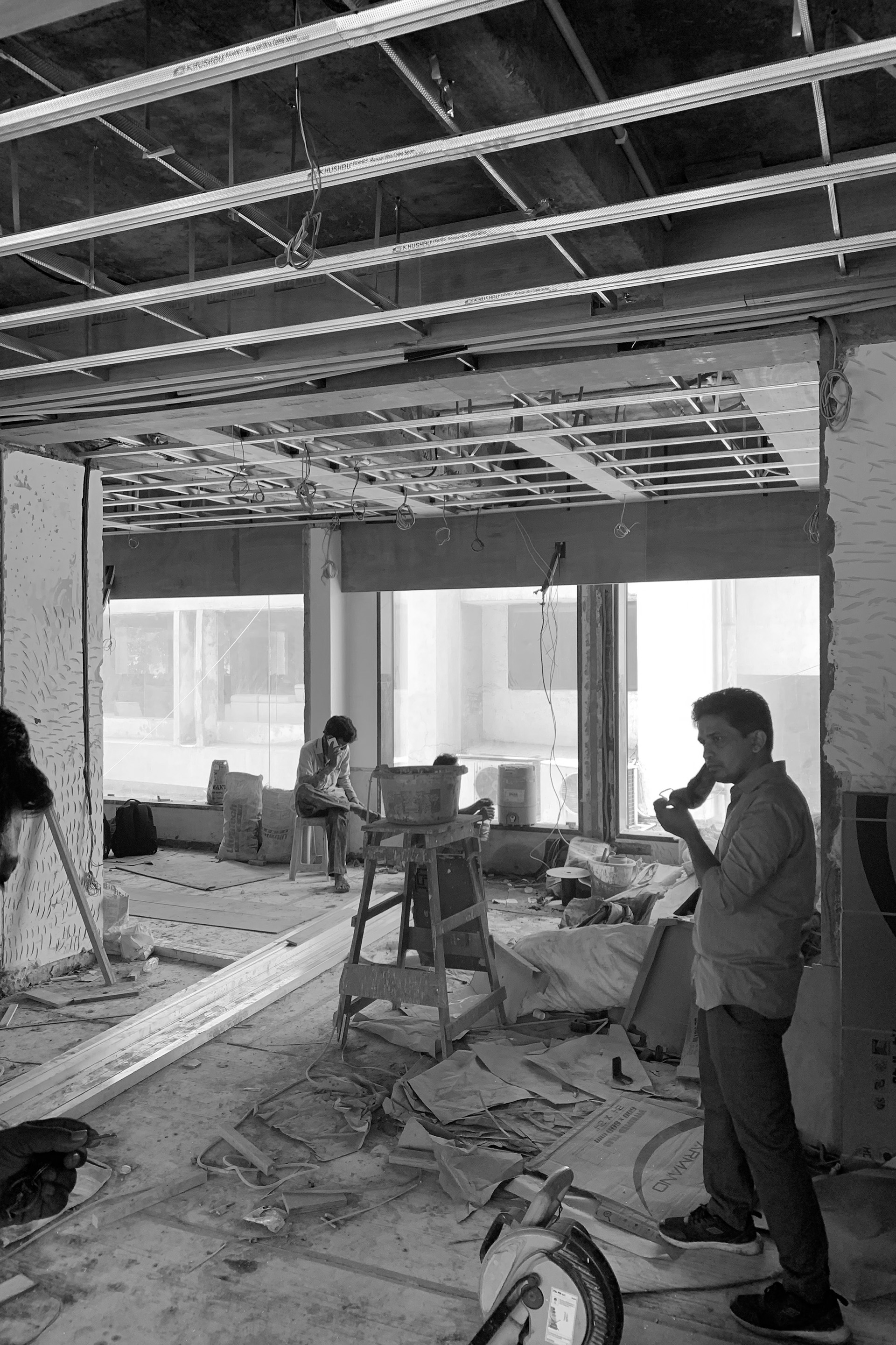 All the furniture’s in this space are made with precision and minute detailing be it the wavy wooden evenly carved handcrafted shutters at the staff zone or the director’s main table accurately stitched leather top and complimented it with semi-circular metal supports, Cantilever bookshelf at the main cabin acts as a backdrop of the owner. Portable furniture, air-purifying plants, innovative use of space planning and material palate meets the challenge of this workspace.
